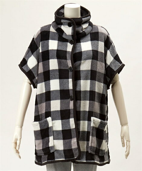 ガウン レディース 着る 毛布 ショート 丈 ルームウエア ネイビー/ベージュ系星柄/黒系チェック/赤 ニッセン