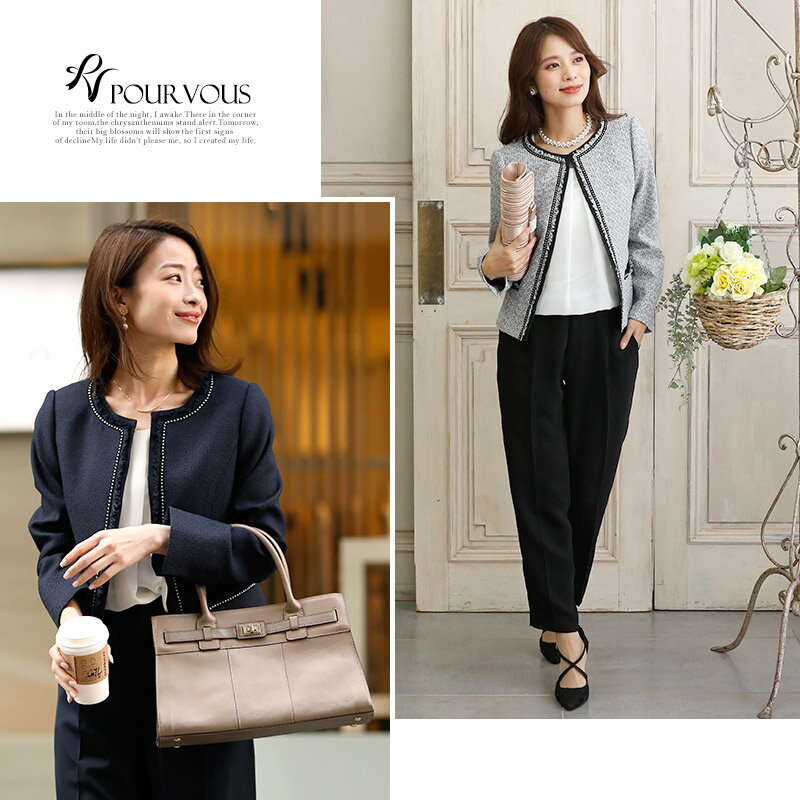 人気のノーカラーのスーツセット ------------------------------------------------------------ 人気のノーカラーアイテム。